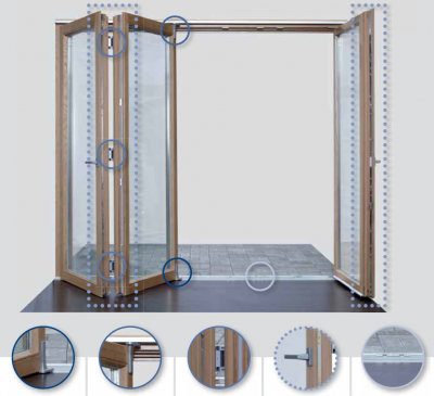 Възможността за монтаж с алумиев праг на G-U, позволява хармониката да бъде изработена съгласно DIN 18040.