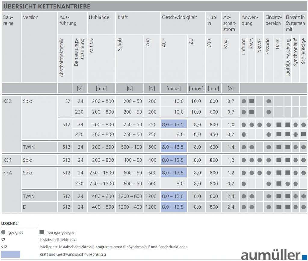 С техния тънък дизайн, верижните мотори на AUMÜLLER прилягат елегантно на профила. Използват се в SHEV системи и за натурална вентилация на въздух чрез автоматизирани прозорци, главно на фасади. Моторите с напрежение 230V са подходящи само за вентилационни нужди.