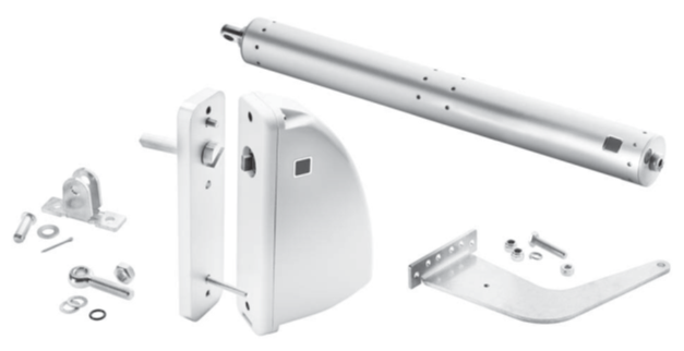 - Ъгъл на отваряне от 90 градуса с къси удари и време на отваряне поради монтажа на задвижванията на шпиндела при остър ъгъл спрямо страничния затварящ ръб и поради изместването на шарнирната точка на рамковата скоба зад конструкцията на гребло / греда